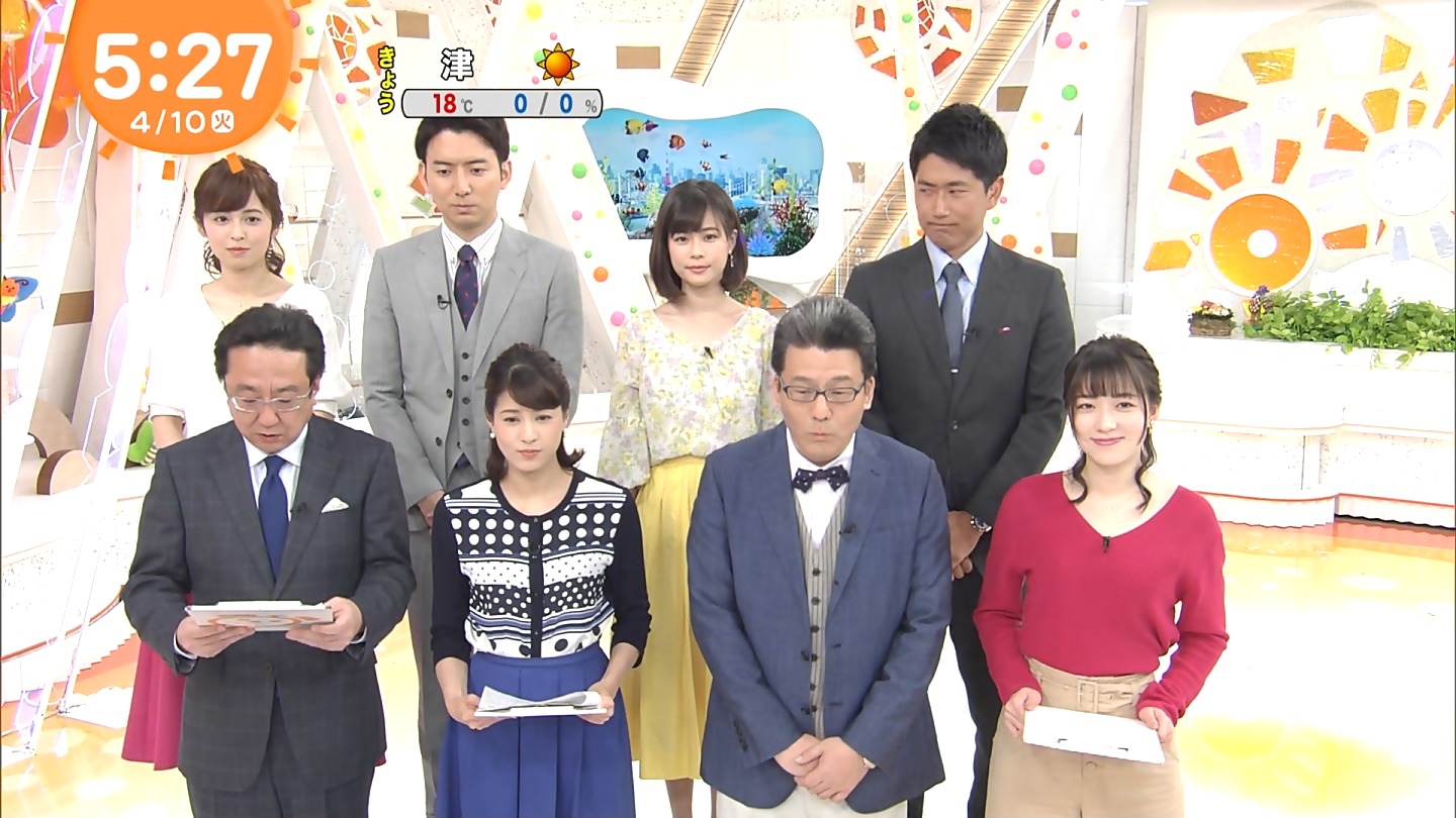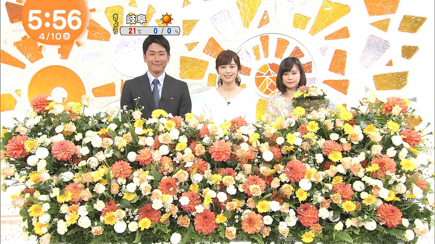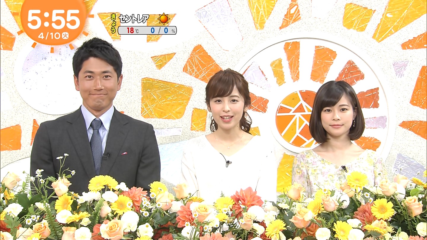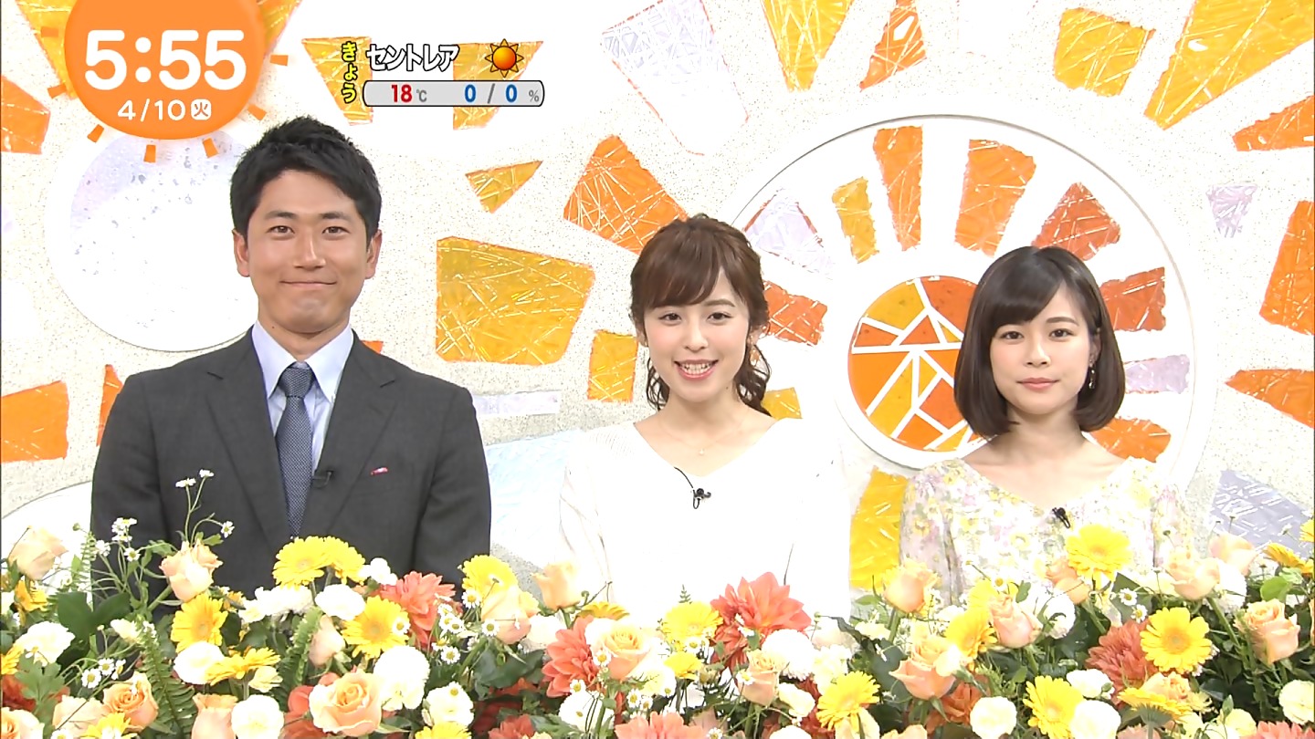 宮澤智 新美有加 高見侑里 岡副麻希 沖田愛加 180414めざましどようび(フジ)(1/3) 新美アナ胸元チラリ