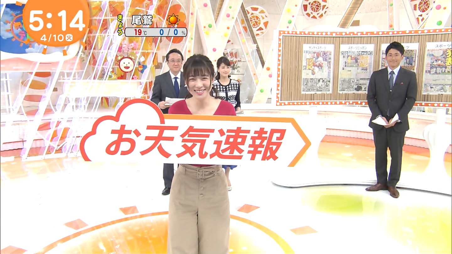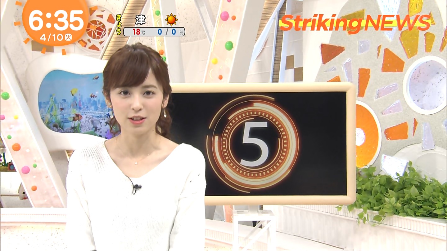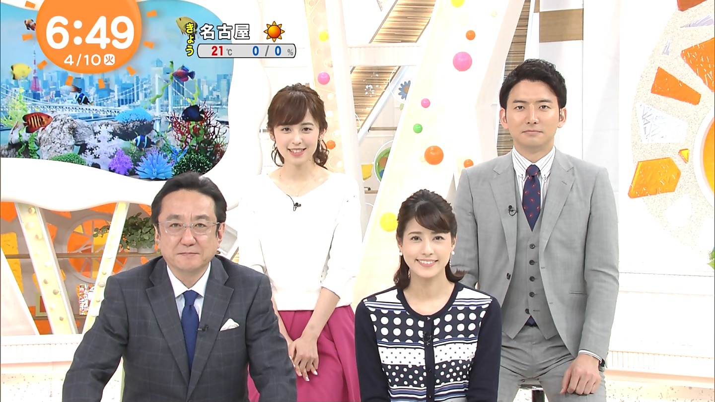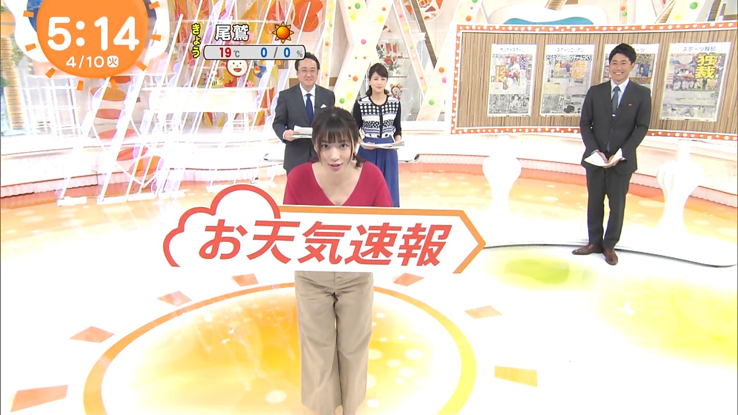 宮澤智 新美有加 高見侑里 岡副麻希 沖田愛加 180414めざましどようび(フジ)(1/3) 新美アナ胸元チラリ