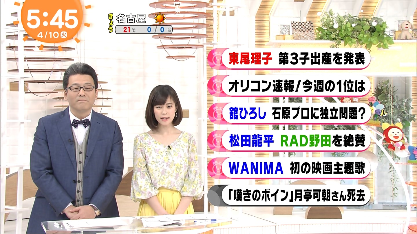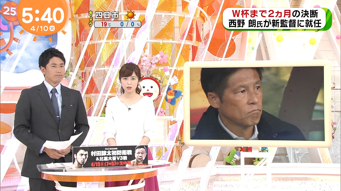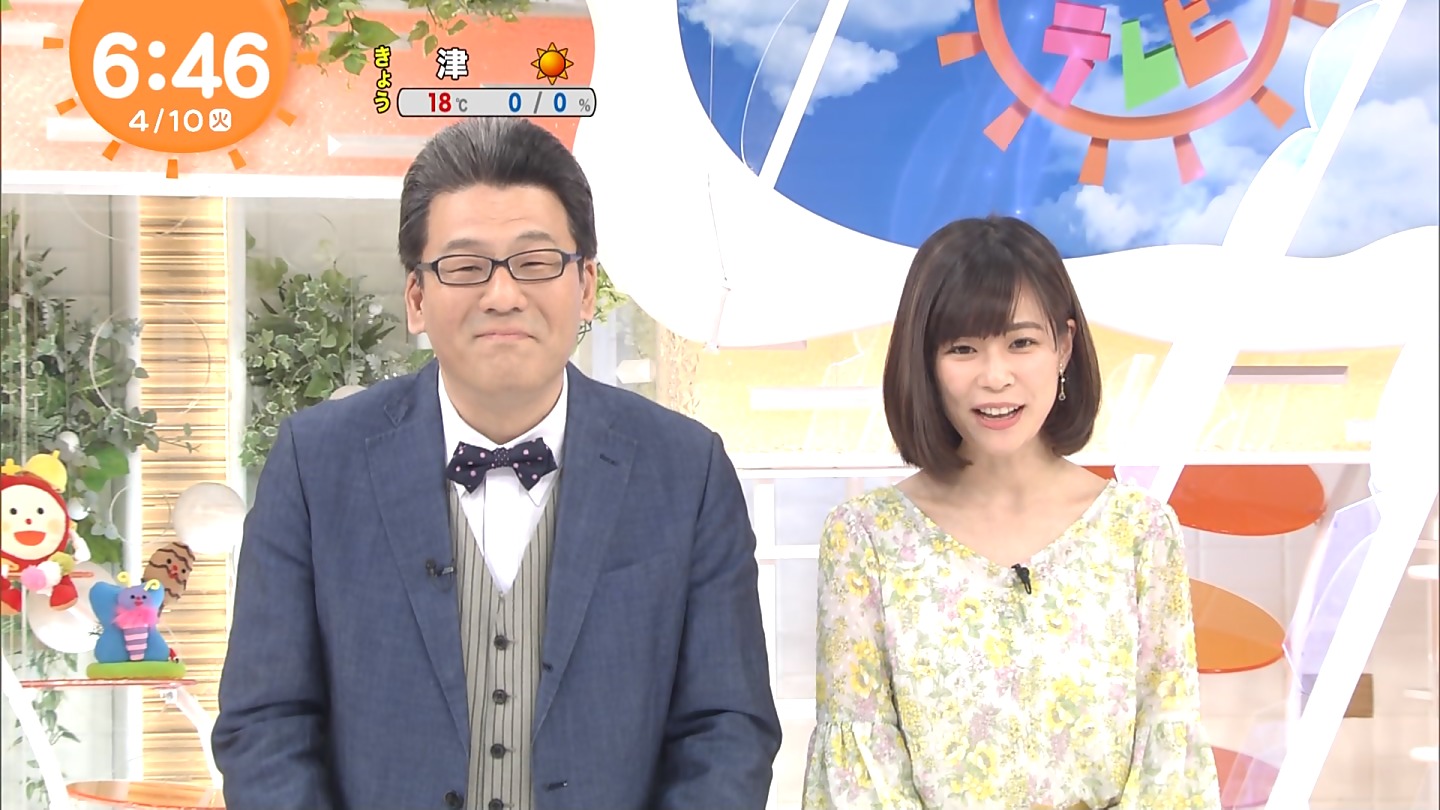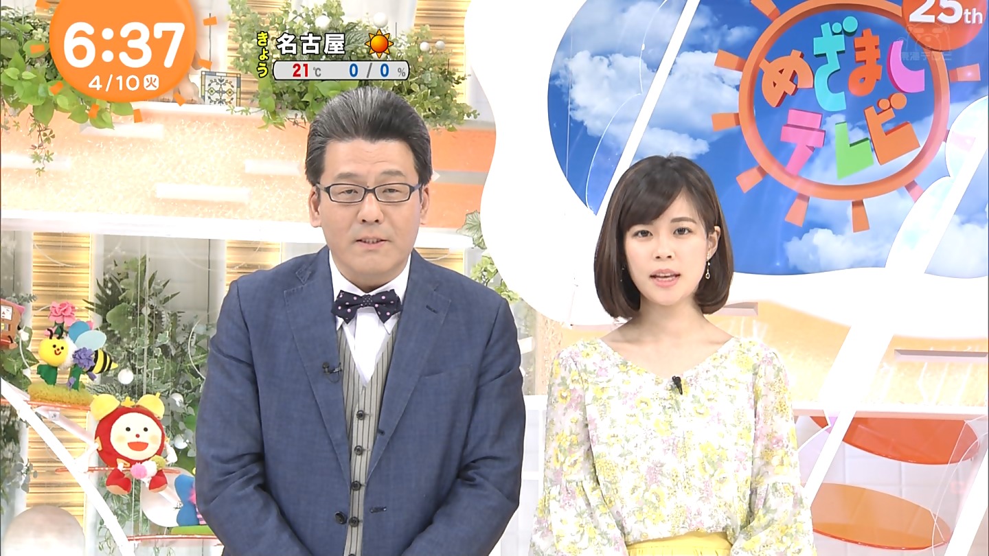 宮澤智 新美有加 高見侑里 岡副麻希 沖田愛加 180414めざましどようび(フジ)(1/3) 新美アナ胸元チラリ