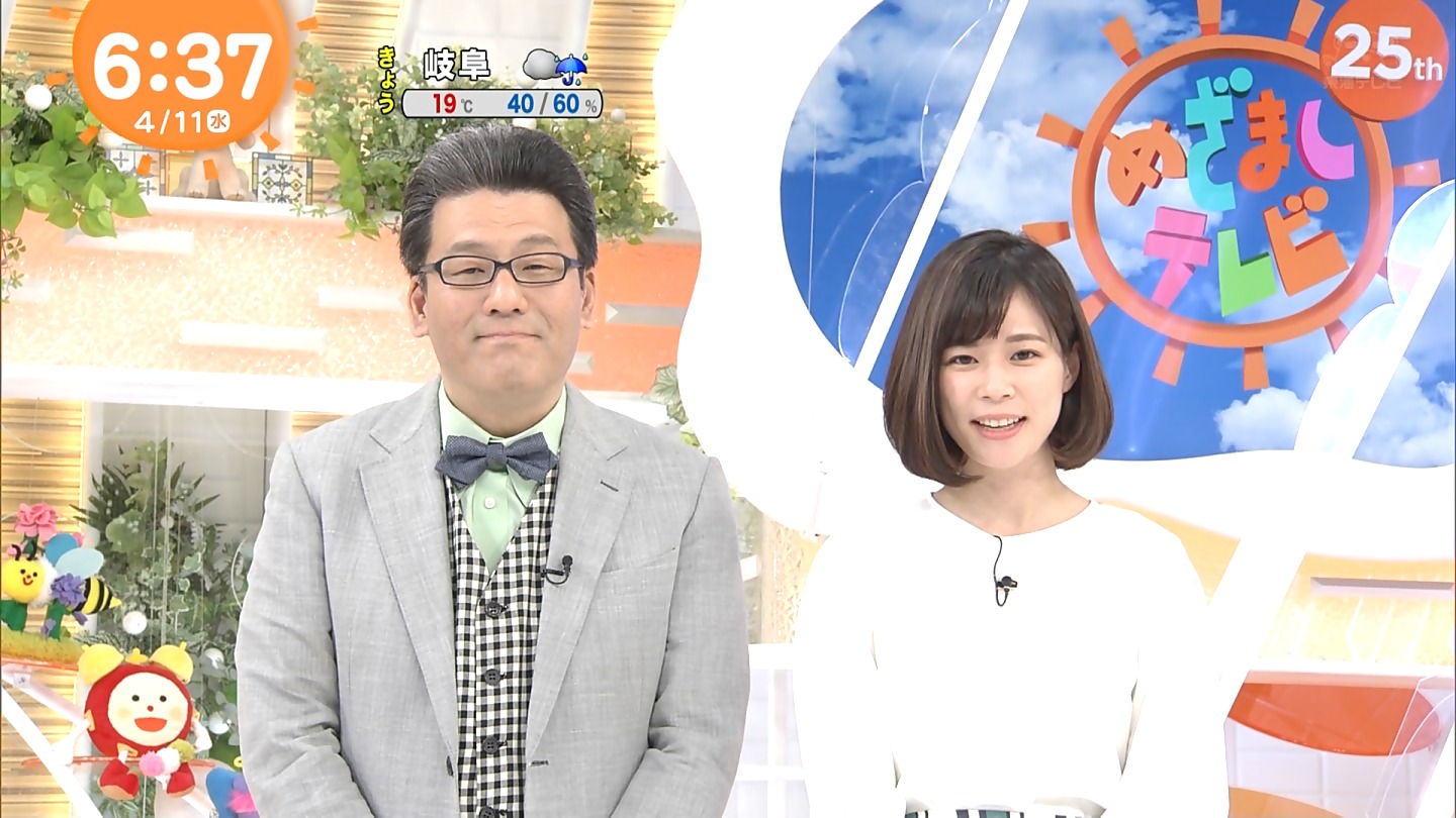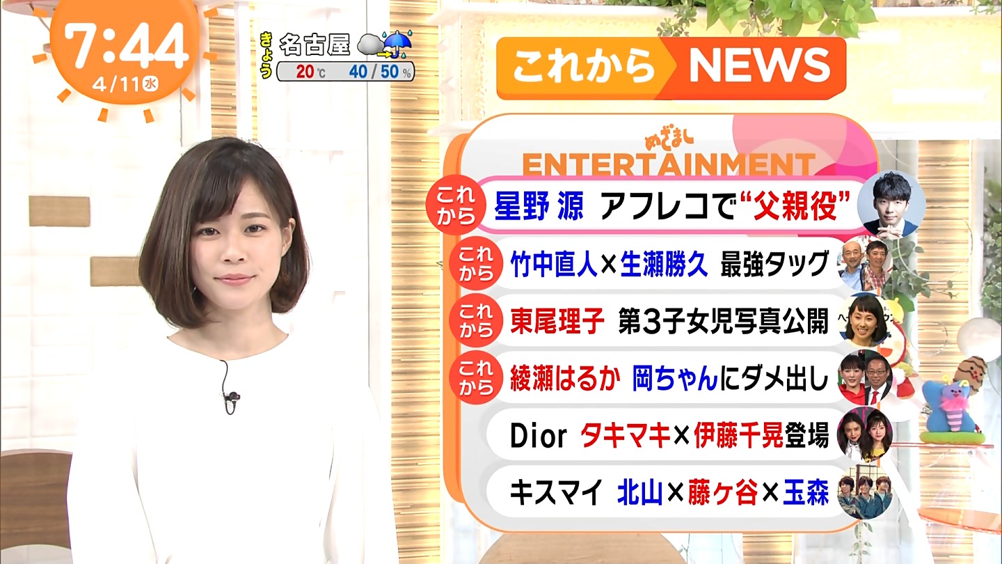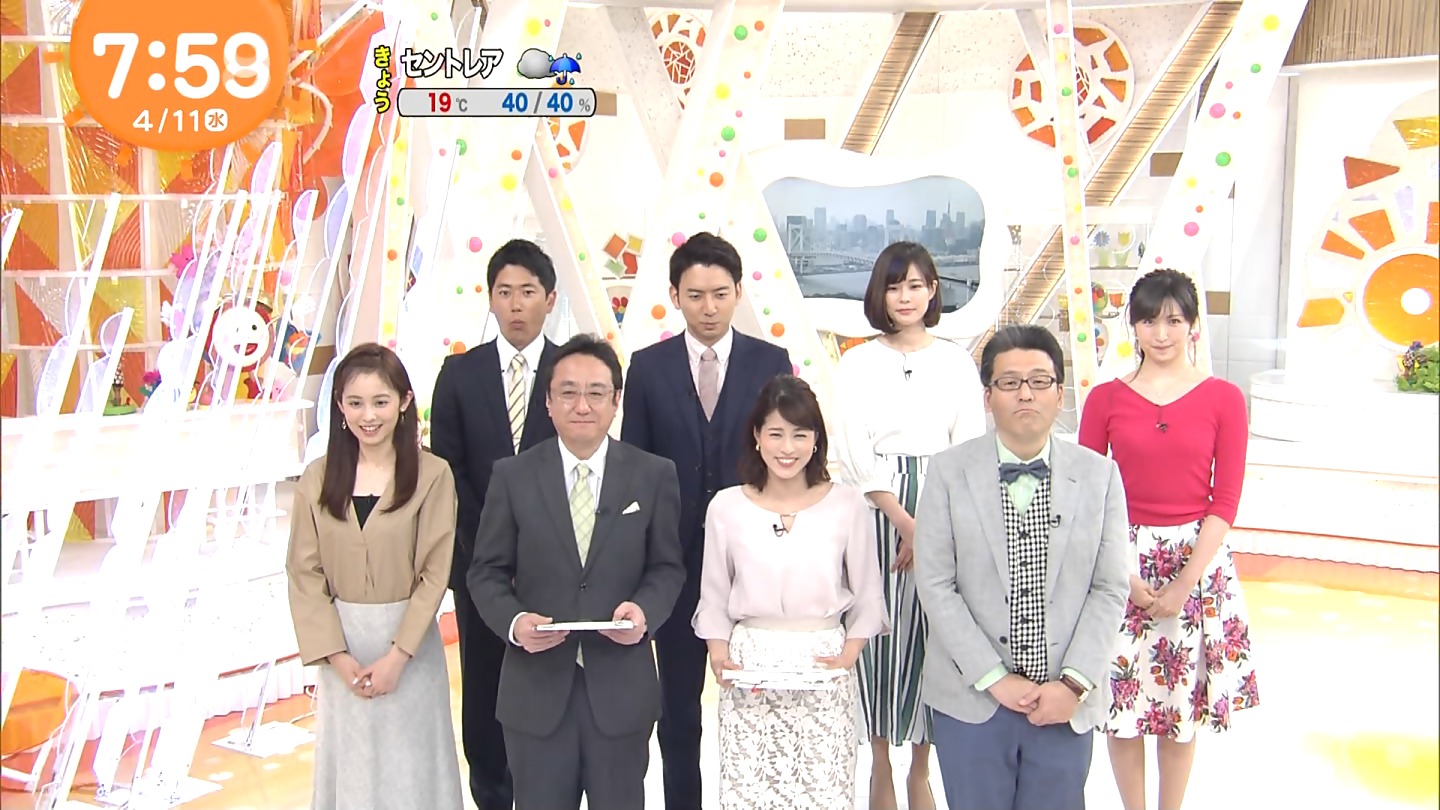 宮澤智 新美有加 高見侑里 岡副麻希 沖田愛加 180414めざましどようび(フジ)(1/3) 新美アナ胸元チラリ