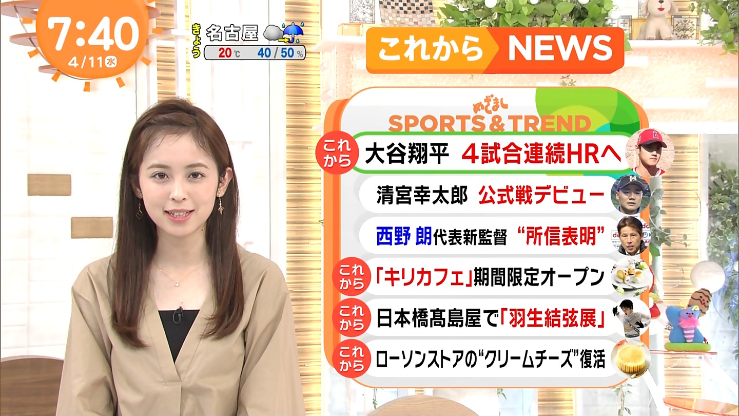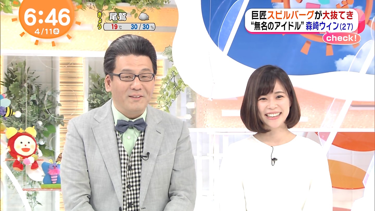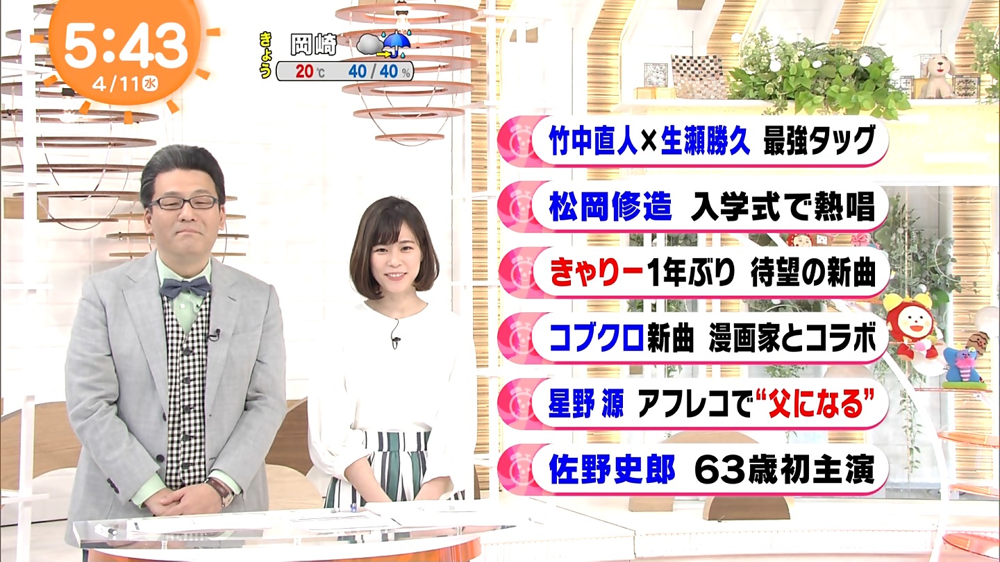 宮澤智 新美有加 高見侑里 岡副麻希 沖田愛加 180414めざましどようび(フジ)(1/3) 新美アナ胸元チラリ