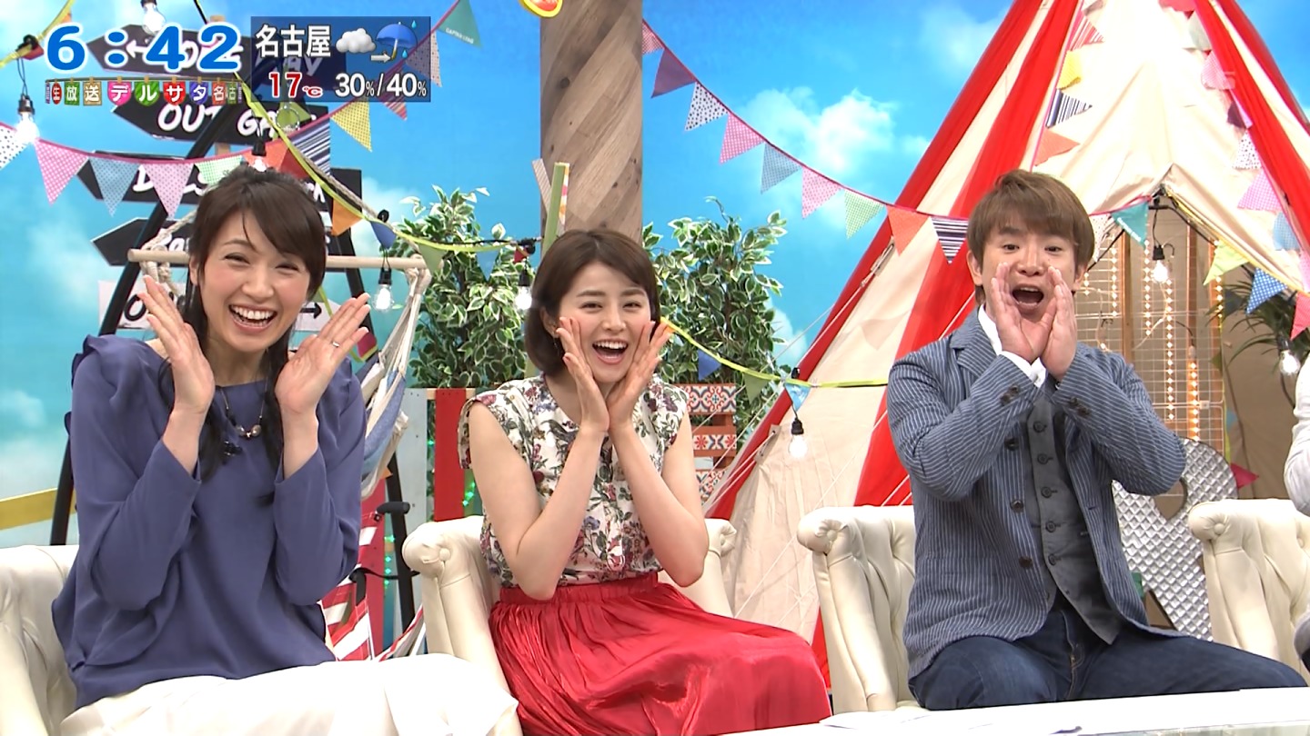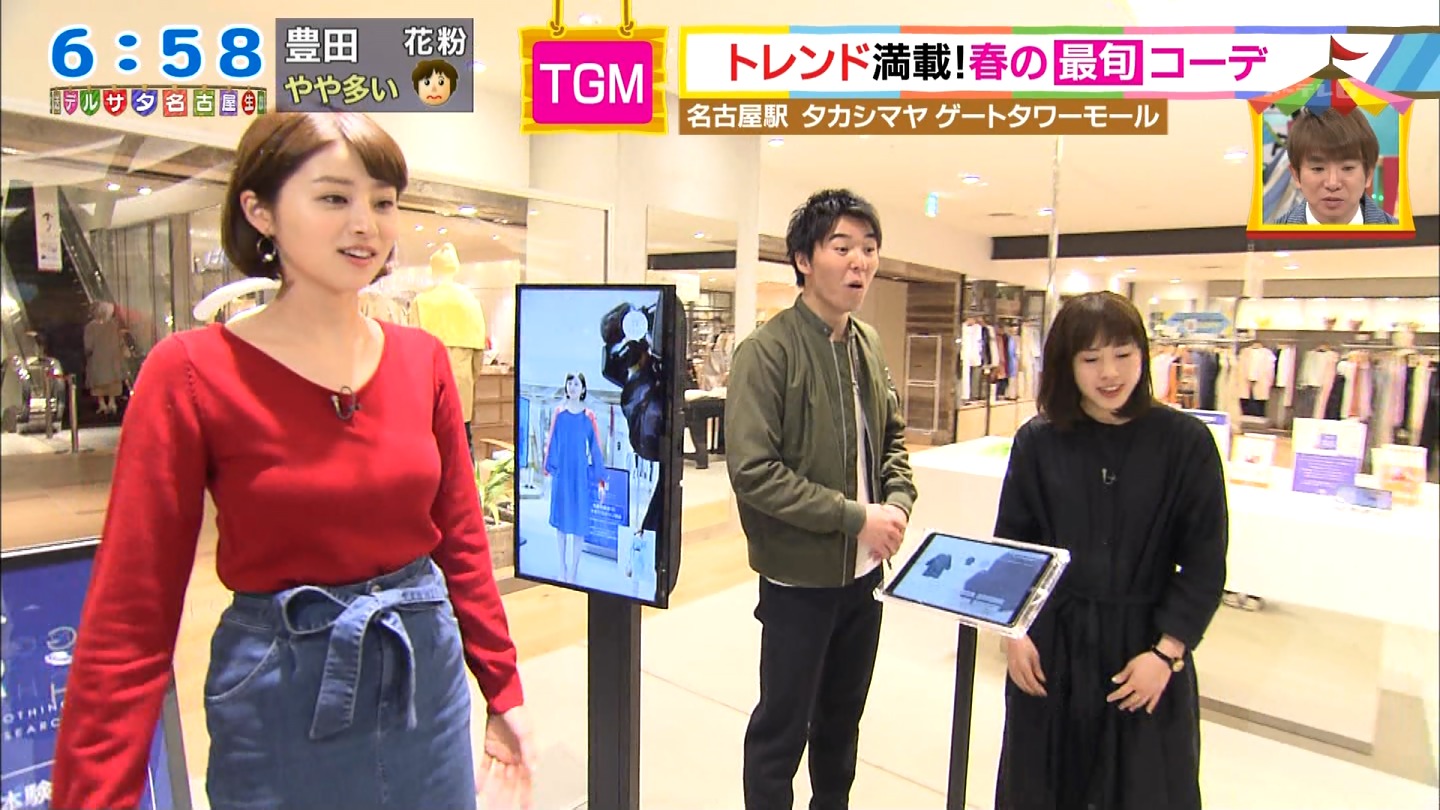 宮澤智 新美有加 高見侑里 岡副麻希 沖田愛加 180414めざましどようび(フジ)(1/3) 新美アナ胸元チラリ